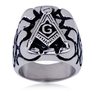 Back band width is approximately 8mm. 316L is the highest grade of stainless steel used in the jewelry market. It will not fade, change color, or leave stains on your body. It doesn't even require any maintenance to keep it looking new. Design: antiqued enamel carved Freemasonry Icon.
