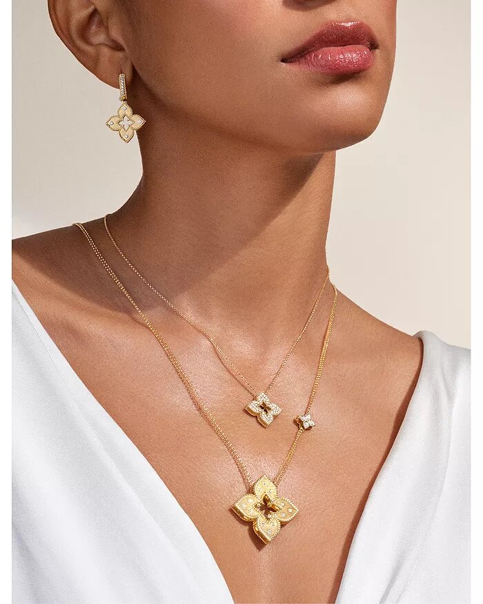 18K Yellow Gold Venetian Princess Diamond Flower Pendant Necklace
