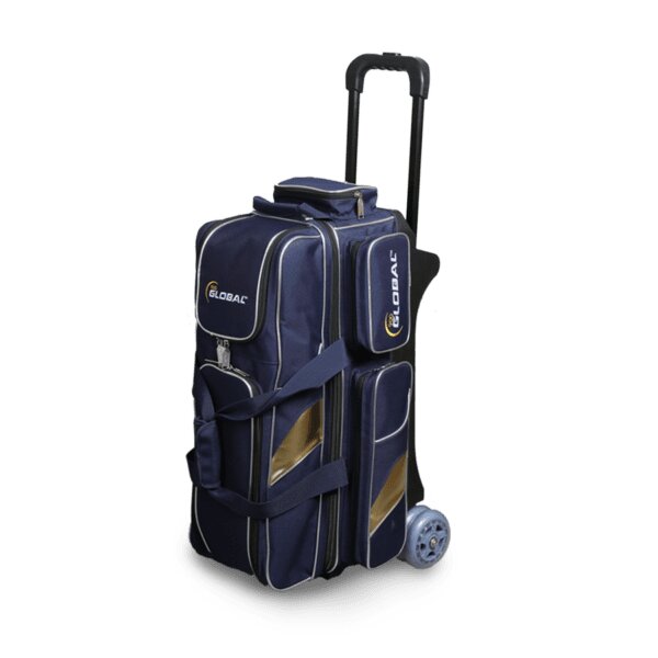 The 900 Global Deluxe 3 Ball Roller Bowling Bag, priced at $235 with shipping included, is the ultimate blend of style and performance. As the first bag to feature double super smooth Clear-Gum soft wheels, it offers superior stability over other models, thanks to its 4 Quad 5" wheels. Designed with a durable shell case to securely hold three bowling balls, it also includes a shoe compartment that accommodates up to men's size 15 shoes and three accessory pockets for your essentials. The bag comes with a locking handle and a 5-year limited warranty, ensuring durability and convenience for serious bowlers.