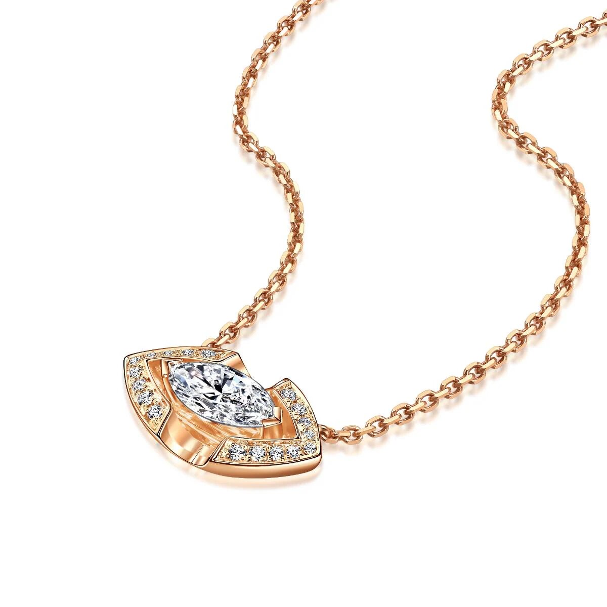 The 18K Rose Gold Marquise-Shaped Diamond Necklace, priced at $4,429 with shipping included, exudes elegance and luxury. Crafted from 18K/750 rose gold, this exquisite necklace showcases a stunning marquise-shaped diamond, making it a timeless addition to any jewelry collection. Perfect for adding a touch of sophistication to any outfit, this necklace combines high-quality materials with a refined, classic design.