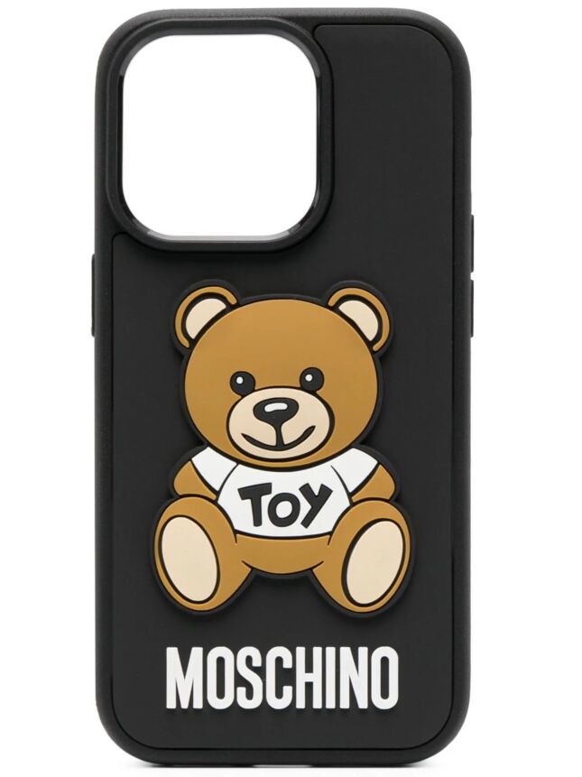 Moschino Teddy Bear iPhone 14 Pro Cover, featuring a distinctive logo print and iconic Moschino Teddy Bear detail on the outer side. Specifically designed to be compatible with the iPhone 14 Pro, this stylish cover seamlessly combines fashion and functionality. Crafted with precision, the cover is made from a composition of 40% Polycarbonate, 20% Polyurethane, and 40% Polyvinyl chloride for a durable and high-quality finish. Elevate your device with this sleek accessory that not only protects but also adds a touch of Moschino's signature style to your iPhone.