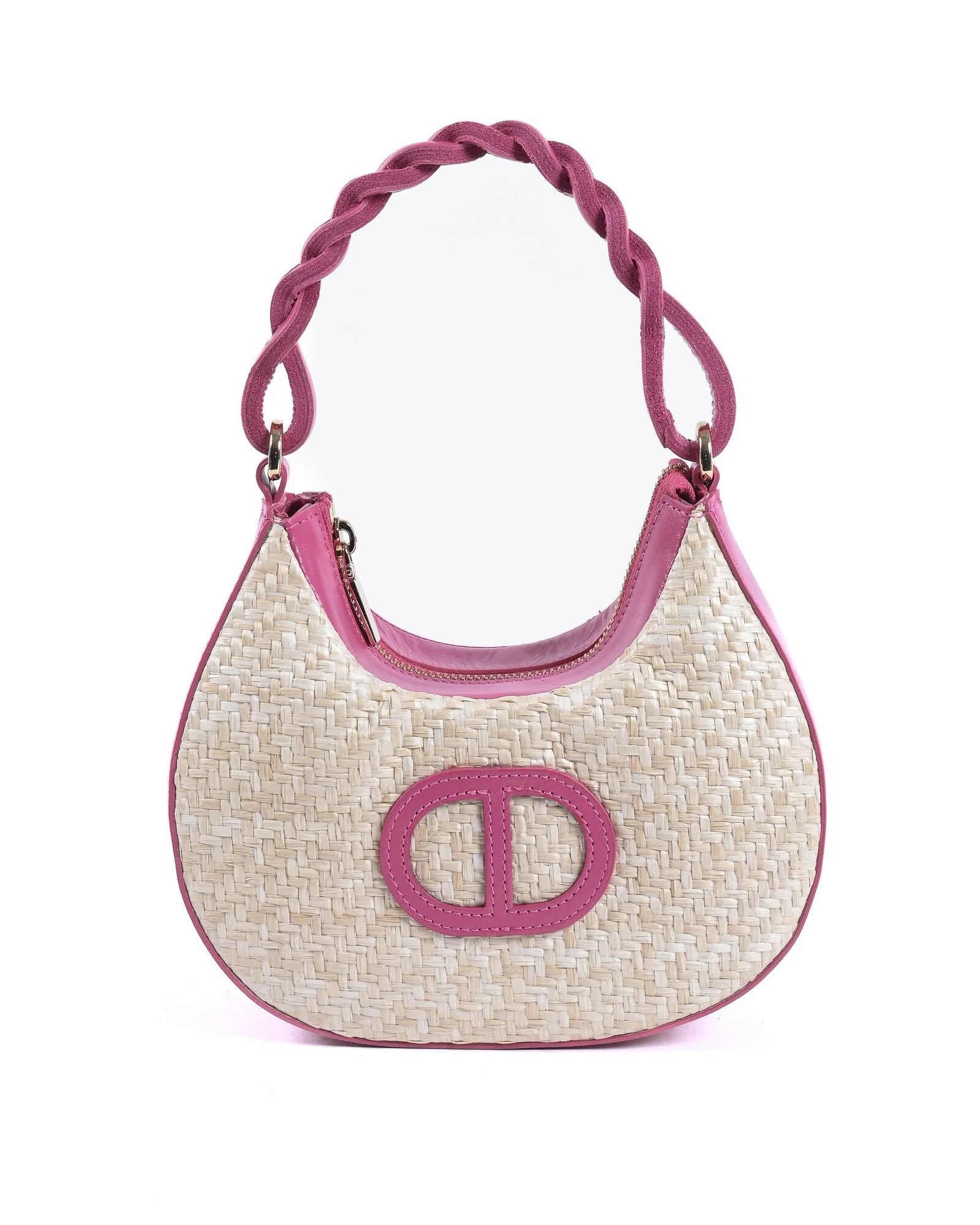 The Torino Handbag makes a striking yet harmonious statement. It combines supple leather with a skillfully woven raffia texture, accentuated by its alluring curvaceous silhouette. Designed to hold just the essentials, it exudes an air of refined simplicity. Adorned with a leather Dee Ocleppo logo and complemented by a golden zipper, the Torino Handbag subtly communicates its unique allure—you're carrying a distinctive radiance wherever you go.