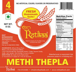 * The rotis will last 7-8 days in the regular refrigerator from the day they are received. If you feel as though you will not finish the packet within that time frame, please separate however many rotis or packets you will not finish within 7-8 days in a separate Ziplock bag and put them in the freezer.