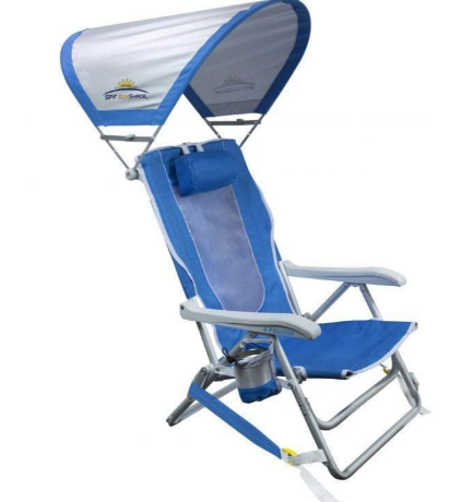 The GCI Outdoor SunShade Backpack Beach Chair is a 4-position aluminum chair featuring the SPF SunShade™ – an adjustable shade that rotates front to back and can collapse flat. To maximize sun protection, the shade features UPF 50 fabric and a large bowed shape. The SunShade Backpack Beach Chair is the perfect chair to take to the beach, because it also features a large pocket attached to the back of the chair that is large enough to store a towel and all of your beach essentials in. Still have a lot to carry? This chair comes with backpack straps, leaving your hands free to carry a cooler, kids or your iced coffee. Additional benefits include a head pillow, mesh backrest and beverage holder.