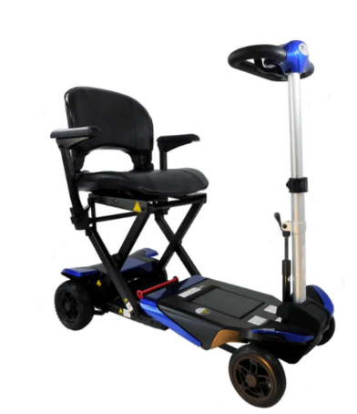 This Transformer series is an easy to use, ultra-portable electric, mobility scooter that offers the ultimate in convenience offering both Remote Control and Manual folding operation. While light weight, 53 lbs (24 kg) without battery, this remarkable, compact scooter has a 300 lbs (136 kg) weight capacity and which gives you up to 13.5 miles on a single charge!