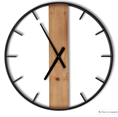 Introducing our new 24" Wall Clock with a unique combination of black metal and natural wood, this modern design is sure to enhance any room. Perfectly sized at 24"Dia x 1.75"D, this clock is battery operated and requires 1 AA battery (not included). Whether you are looking for a modern and stylish piece for your living room, bedroom, or office, this clock will add a timeless touch to your décor.