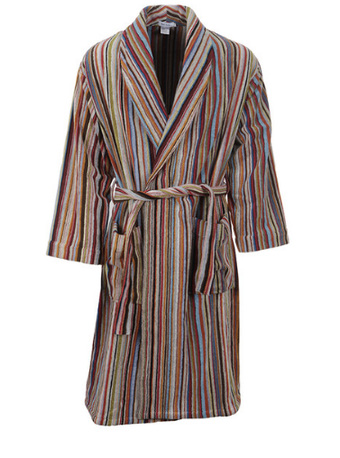 Indulge in luxurious comfort with the Men's Multi-Color Multi-Stripe Dressing Gown, available for $284 with shipping included. From the Paul Smith Jeans Collection, this dressing gown features the iconic Paul Smith signature stripe throughout, exuding a distinctive charm. It comes equipped with two convenient patch waist pockets, perfect for storing essentials, and is finished with a tie closure for a snug fit. Crafted from 100% cotton, this dressing gown ensures both style and comfort. Designed in a Regular Fit, it is true to size across the chest and body, making it a versatile addition to your wardrobe.