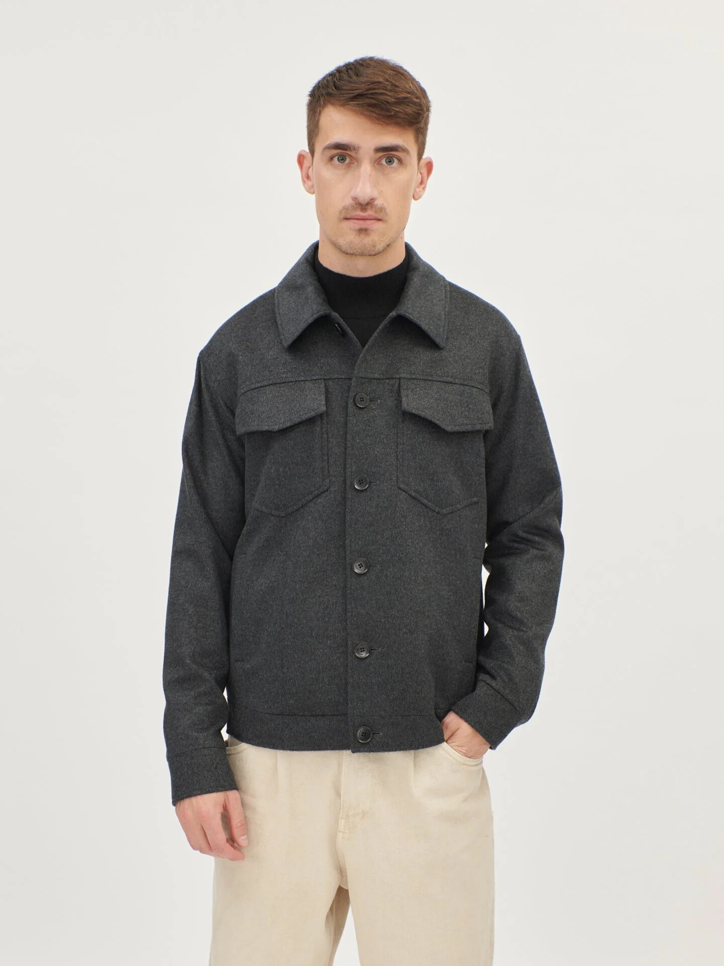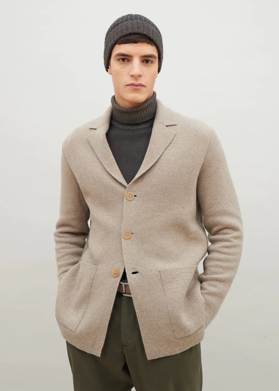 Virgin Wool and Cashmere Jacket, now available at a 20% discount. This exquisite jacket, crafted from a blend of virgin wool and cashmere, showcases a unique double-layering of fibers, striking a perfect balance between classic and contemporary style. In a rich brown hue, the jacket boasts a composition of 68% virgin wool, 28% cashmere, 3% PA (polyamide), and 1% PU (polyurethane). With a finesse rating of 12, it emanates a refined and luxurious feel. Expertly made in Italy, this jacket exemplifies the artistry and elegance synonymous with Italian craftsmanship.