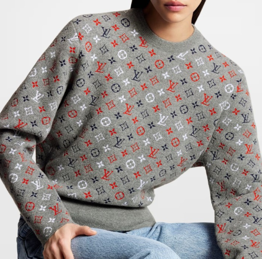Louis Vuitton Crew Neck Monogram Wool Cashmere Nylon Street Style Sweater for the 2023-24 Fall/Winter season. Immerse yourself in the luxurious blend of wool, cashmere, and nylon that defines this exquisite creation from Louis Vuitton. Featuring a classic crew neck design, this sweater showcases the iconic Louis Vuitton logo and monogram, effortlessly capturing the essence of street style. Crafted with precision and attention to detail, this sweater boasts the timeless appeal of cashmere, ensuring a touch of unparalleled softness and warmth.
