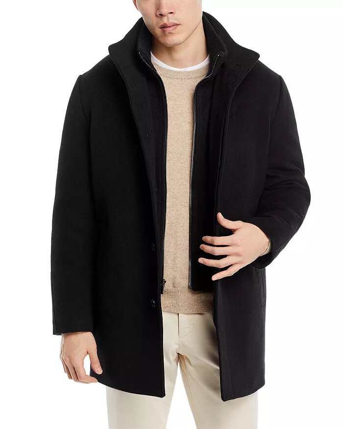 The Mont Royal Wool & Cashmere Regular Fit Car Coat – is a timeless fusion of warmth, style, and functionality. Designed to fit true to size, simply order your usual size for the perfect fit. Crafted from a luxurious wool and cashmere blend, it offers both comfort and durability. The stand collar features an interior rib-knit layer for added warmth and a classic touch. Discover the textured band with signature back embroidery under the collar, adding a unique element to the coat. Functional details include exterior side slit pockets, interior pockets, and a single vent at the back for mobility.