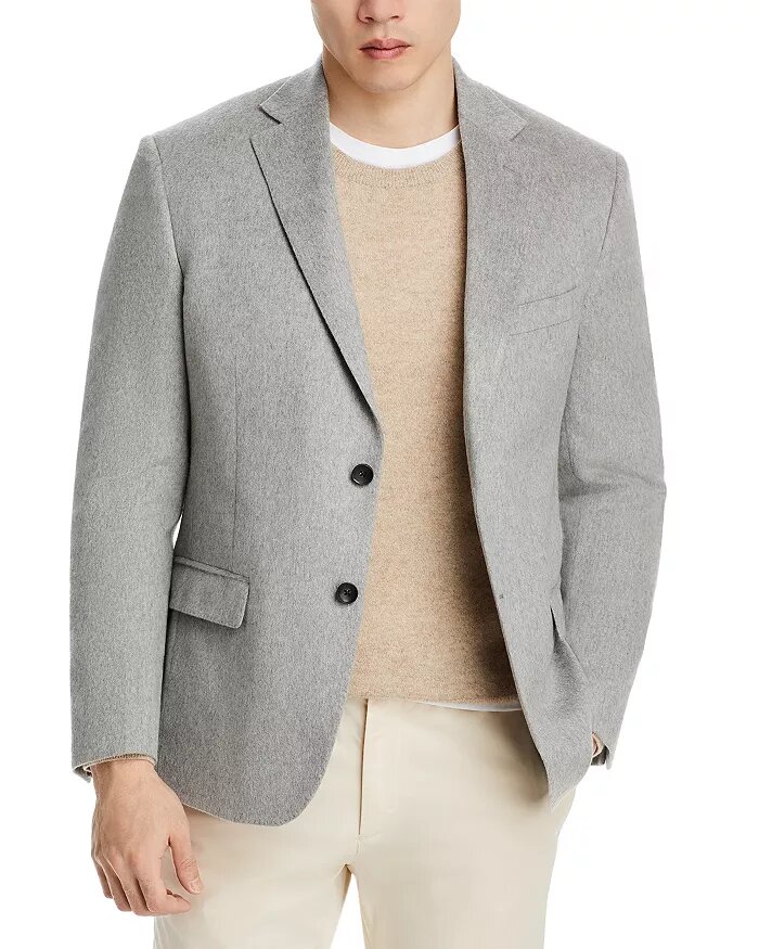 Regular Fit Cashmere Blazer, is a pinnacle of refined style and sophistication. This blazer features a classic notch lapel, adding a timeless touch to your ensemble. The two-button closure enhances the tailored look, ensuring a sleek and polished appearance. Designed with long sleeves and four nonfunctional sleeve buttons, this blazer exudes a sense of elegance. The two front flap pockets and left chest welt pocket provide both style and practicality, offering convenient storage options for small essentials. Imported for exceptional quality, this Regular Fit Cashmere Blazer is a versatile addition to your wardrobe. Elevate your formal or semi-formal attire with the luxurious feel and impeccable craftsmanship of this imported blazer.