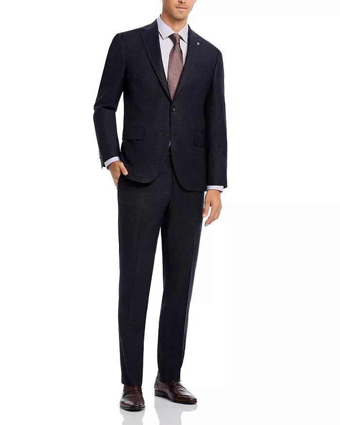 Enjoy a 25% discount on the Jack Victor Napoli Crepe Weave Solid Regular Fit Suit, now available at $1237, reduced from $1643. The jacket features a notch lapel, two-button closure, four nonfunctional button cuffs, two front flap pockets, a left chest welt pocket, a double back vent, and is fully lined. The pants are equipped with a zip fly, hook closure, belt loops, two side hand pockets, and two back pockets, and come with a fully lined and unfinished hem. Take advantage of complimentary basic alterations at your nearest Men's Store at Bloomingdale's with the purchase of any full-price suits, tuxedos, sports coats, and trousers. This exquisite suit is proudly Made in Canada.