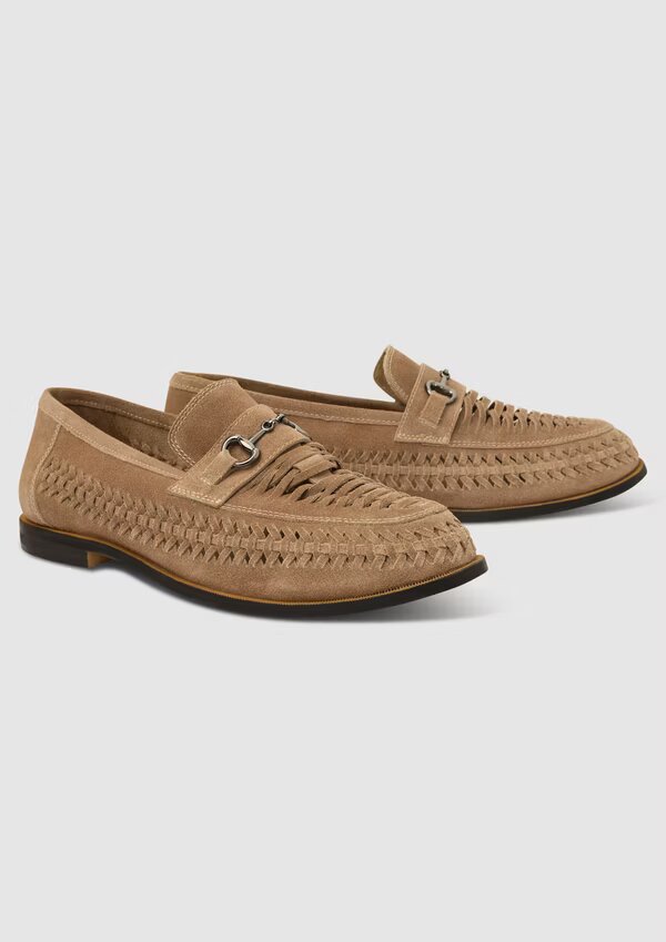 Introducing the Sand Capri Woven Loafer, now available with up to 39% off! Experience a remarkable price drop from $130 to $80. The Capri Woven Loafer by Johnny Bigg elevates your evening ensemble with smart suede sophistication. Featuring intricate woven huarache strap detailing and an almond toe shape, these loafers effortlessly exude a refined yet relaxed vibe. The addition of a metal horse-bit detail on the top strap adds just the right touch of intrigue to any outfit. Subtle yet striking, these loafers ensure you step out in comfort and confidence. Slip into sophistication with the Capri Woven Loafer! Key features include Huarache woven detail. Almond toe. Stacked heel. Top strap with metal horse-bit detail. Slip-on design. Crafted from suede leather
