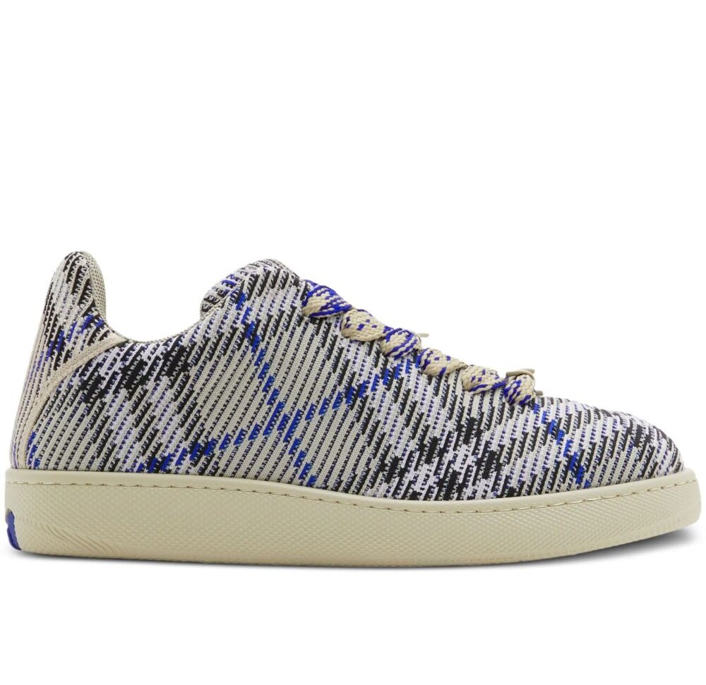 Check Knit Box Sneakers, now available for $642 with shipping included. These Italian-made sneakers feature a stylish lace-up closure and unique barbed wire hardware for a contemporary edge. Complete with Burberry lettering at the sole and a durable rubber sole, they offer both comfort and style. Crafted from 98% polyamide and 2% elastane, these sneakers are a luxurious addition to any footwear collection.
