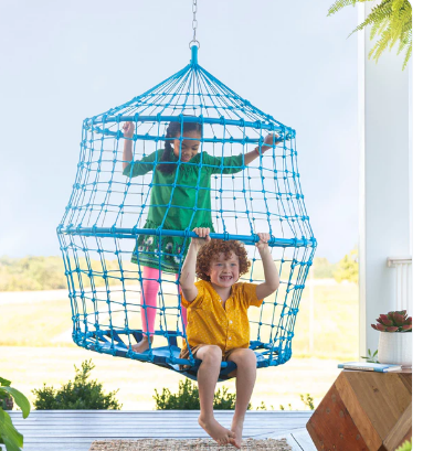 You won't find this unique 3-in-1 play space ANYWHERE else, and your kids will thank you for adding this exclusive hangout to the backyard! Just like its name implies, the Playful Rope HangOut® Climber Swing offers multiple ways to play—climb on the inside, swing, play with favorite toys, read a great book, draw or just hang out!