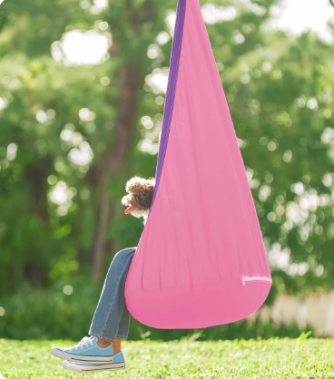 A slightly wider, roomier version of the HugglePod, the HugglePod Deluxe Canvas Hanging Chair offers extra comfort for older children or just a little extra space for smaller kids to snuggle. It also supports children with special needs by giving them a safe and soothing place to calm overly-stimulated senses.