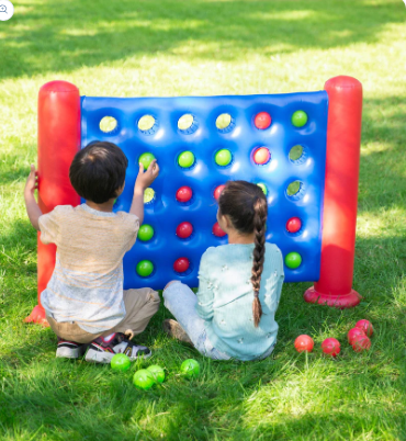 Four in a row? You WIN! We blew up the fun (literally) with this classic sorting and strategy game by making the inflatable board a whopping 4'L and 3'H and including 30 large, colorful plastic balls!
