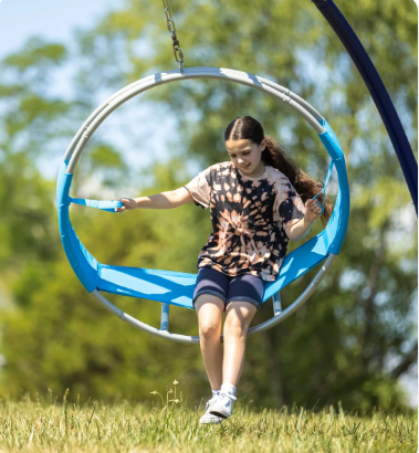 Everyone will jump through hoops to take a ride on the 40-Inch Aerial Hoop Spinning Round Swing, a spinning circle of fun where kids can swing back and forth and side to side, or spin and rotate all afternoon. The 40" diam. steel swing structure comes with a high-quality bearing swivel and a stainless steel carabiner, which allows this circular tree swing to twist and turn while swinging through the breeze. A suspended Textilene mesh seat provides extra comfort, and convenient handles on the side of the frame offer safety.