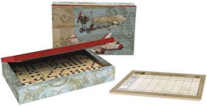 Dominoes is a game that has many variations and can be played by all skill levels. The Vintage Travel Domino Set includes 28 standard-sized, double-six dominoes housed in a decorative box with Tim Coffey's vintage airplane artwork. A true classic, game night has never been more fun!