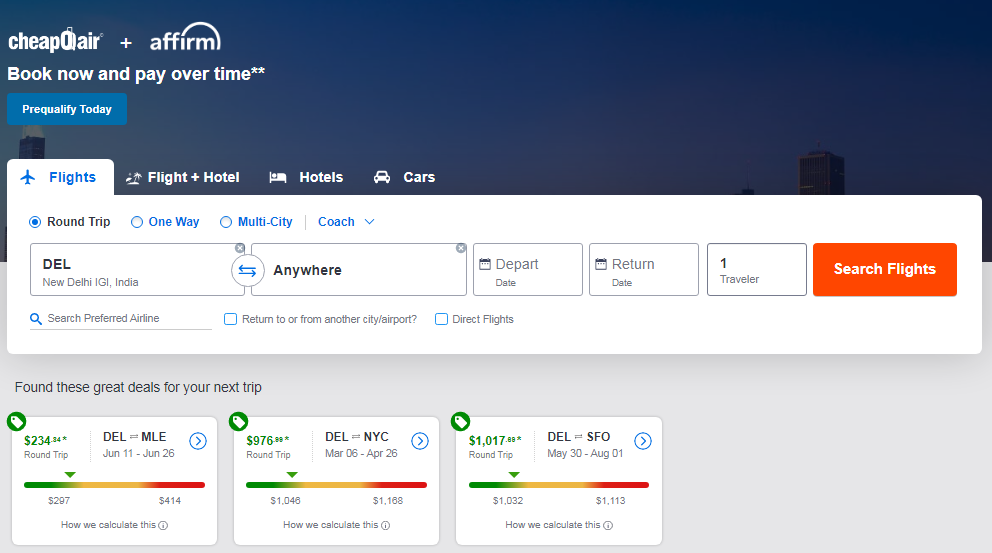 Whether you want to immerse yourself in the natural beauty of Santorini, bask at the stunning beaches of Miami, or explore the rich cultural heritage of Vienna, you can now fly wherever you want and can pay later in easy monthly installment. CheapOair is now offering book now pay later flights to all the United States residents who are 18 years or older (19 years old in Alabama or if you’re a ward of the state in Nebraska). Residents of Iowa and West Virginia are excluded from the service.