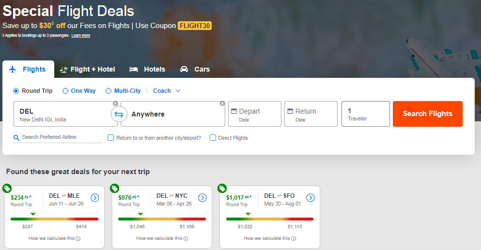 Here’s great news for those looking for budget vacations! OneTravel is offering flight deals under $30. With flight fares so low, now you can plan your trip without breaking the bank. We have plenty of flight deals under $30. Choose from variety of flights tickets under $30 and make bookings.