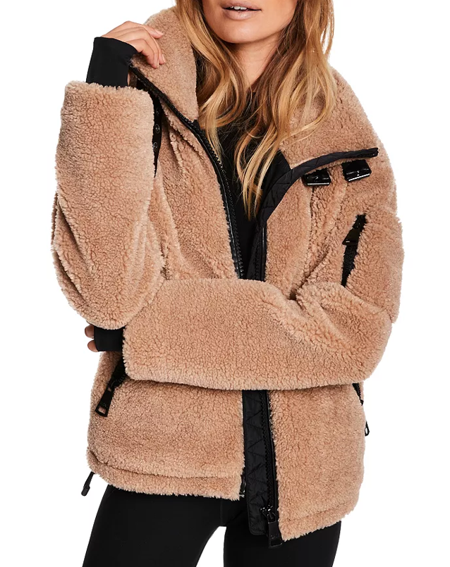 Discover the SAM. Denver faux shearling coat—a perfect blend of comfort and style. This coat is crafted to be lightweight, resisting wind and repelling water, making it an essential addition to your daily wardrobe. Beyond its cozy feel, the coat exudes style with leather accents and thoughtful details. Highlighted features include a stand collar adorned with leather buckles, long sleeves with thumbhole cuffs, and a convenient zip closure at the front. The coat's practicality extends to two side zip pockets and a zip pocket at the sleeve, featuring the brand logo.