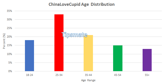 The majority of ChinaLoveCupid's members fall within the age range of 25 to 34.