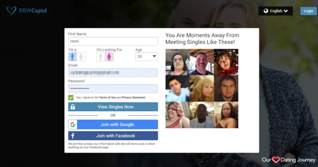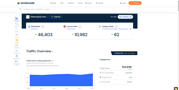 BBWCupid stands out as part of Cupid Media, a reputable company renowned for operating numerous successful niche dating sites. With a track record of managing nearly thirty specialized dating platforms, Cupid Media brings credibility to BBWCupid. The site boasts an impressive monthly traffic of over 740,000 visitors, indicating its popularity and appeal within the online dating landscape.