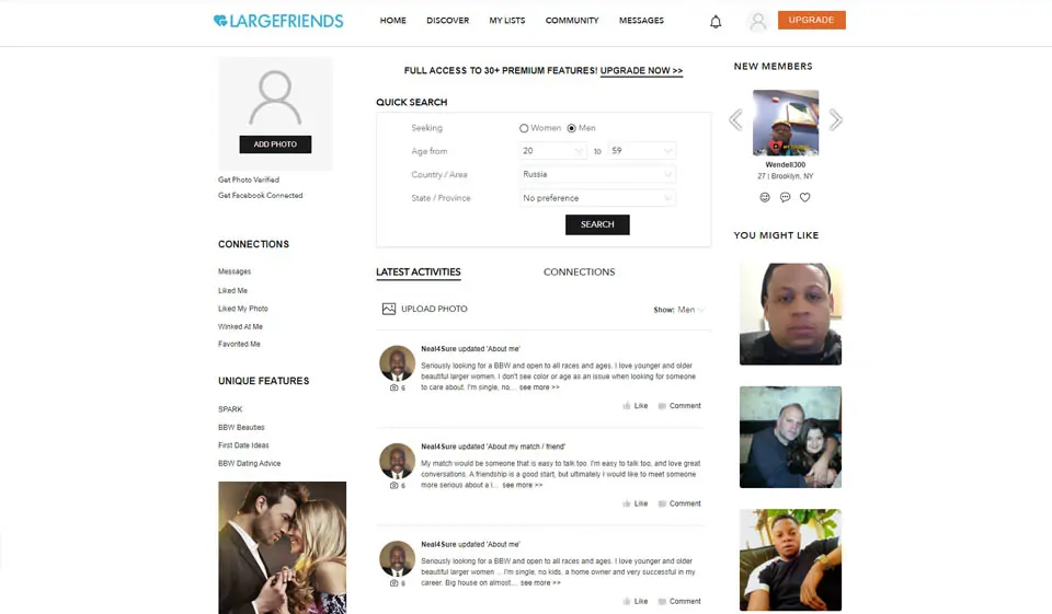 LargeFriends boasts a user-friendly website design with modern features that cater to users of all generations. Its intuitive interface and navigation tools make it easy for members to explore and utilize the platform's functionalities. Whether you're browsing profiles, engaging in conversations, or accessing various features, LargeFriends offers a seamless and enjoyable user experience that enhances the online dating journey.