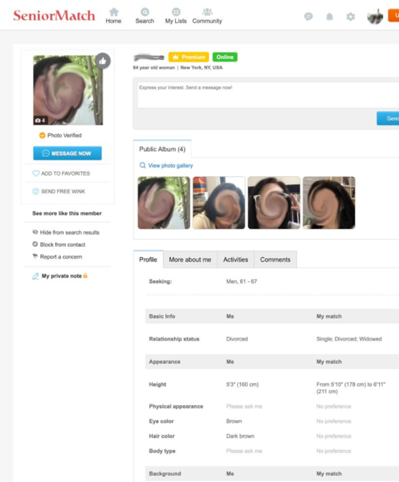 Moreover, all photographs and profiles undergo validation, adding an extra layer of assurance that members are genuine. This validation process helps to maintain the integrity of the SeniorMatch community, ensuring a safe and trustworthy environment for seniors seeking meaningful connections.