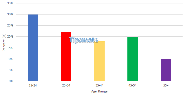 SugarDaddyMeet's age distribution reveals a trend where younger age groups, especially 18-24, consist solely of women. In the 25-35 range, women still outnumber men. The 35-44 group sees an equal split between genders. However, in the 45-54 range, there are slightly more men than women. Finally, the 55 and older category is predominantly male. This pattern suggests a preference for younger women seeking financial support and older men seeking companionship on the platform.
