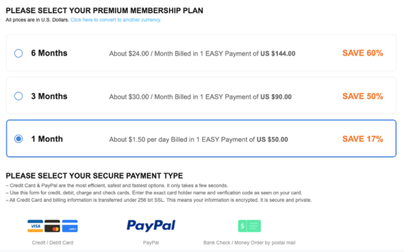 You might be wondering what payment choices are available once you've decided on a Sugar Daddy Meet membership pricing range. You can pay for the service using a variety of methods, including: PayPal, Visa, Mastercard, Order via Money Order,Check from a bank, AMEX