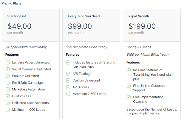 Wishpond offers three main pricing plans: