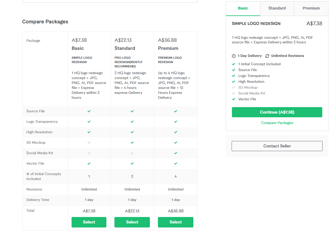 As a seller you can offer there packages to buyers which can be different for every seller and every seller can create their unique packages and can offer different services in these packages.