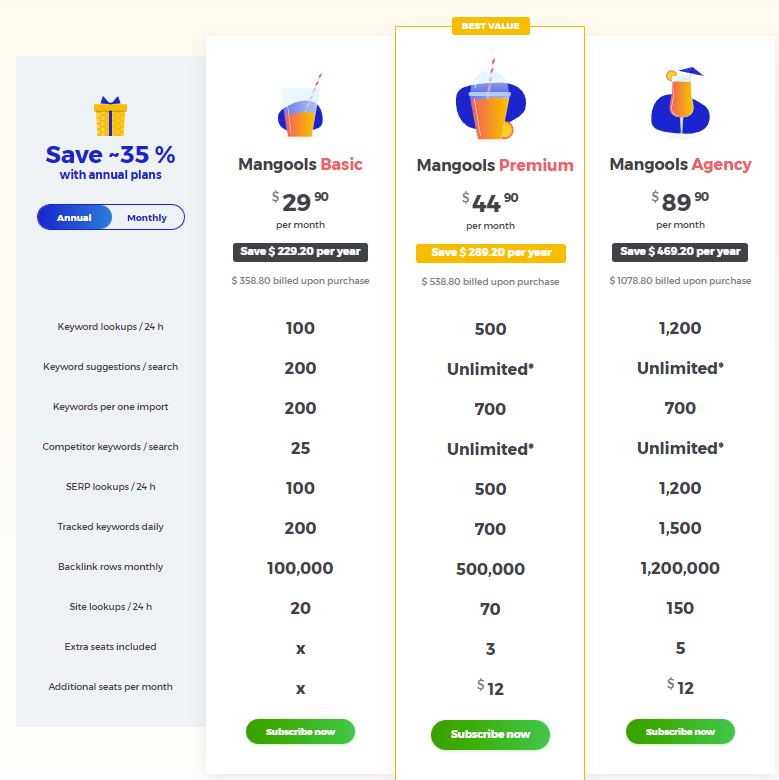 • Basic Plan: Ideal for individuals and small businesses starting with SEO, offering basic features and limited keyword lookups.