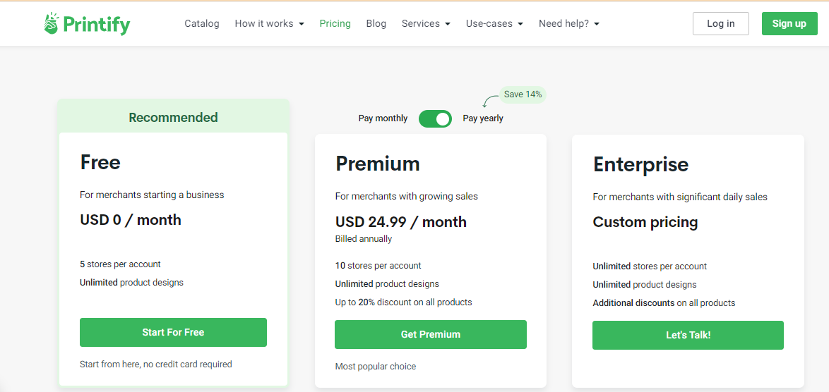Printify offers a tiered pricing structure to accommodate different business needs:
