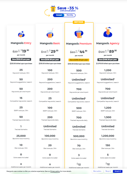 Mangools offers several pricing plans to accommodate different needs and budgets: