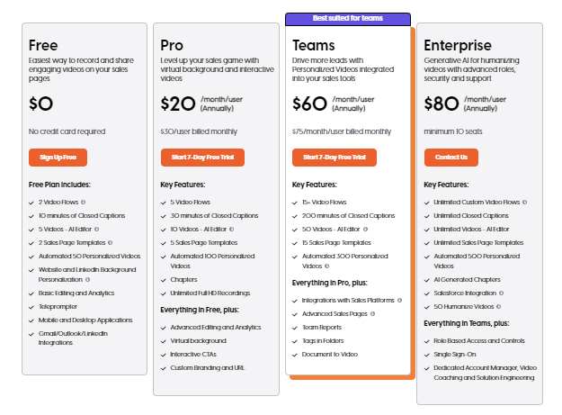 - Pro Plan: Priced at $20 per user/month, this plan includes additional video hosting, sharing, and basic analytics features.