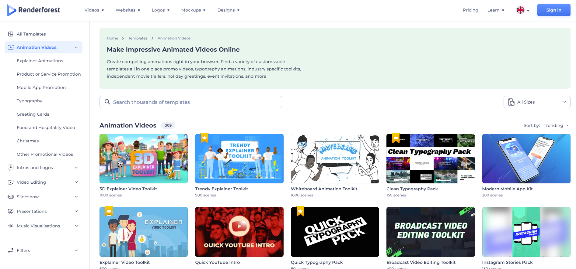 Features: Basic access to video creation tools and limited exports with Renderforest watermark.