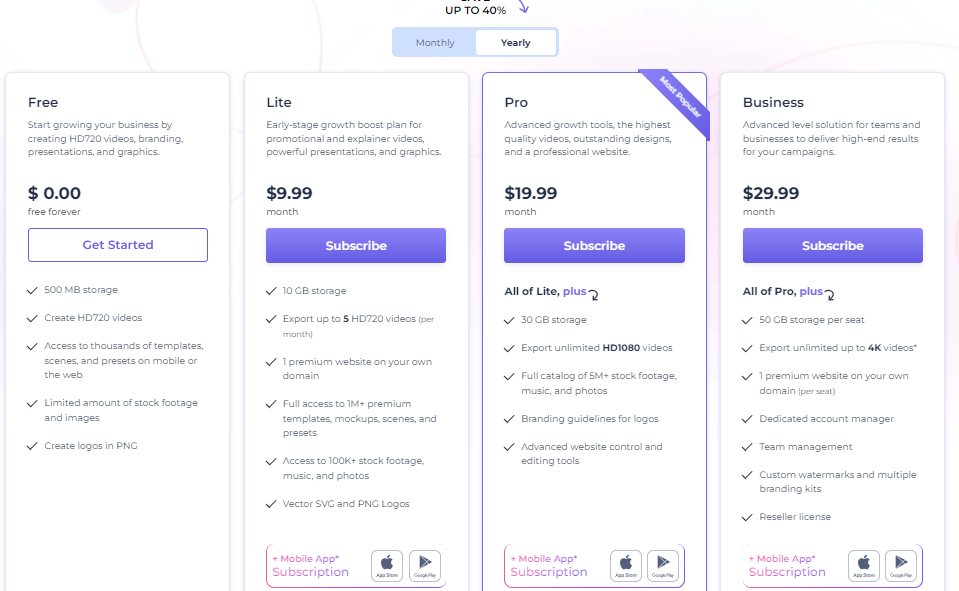 Renderforest offers flexible pricing plans to accommodate different user needs and budgets: