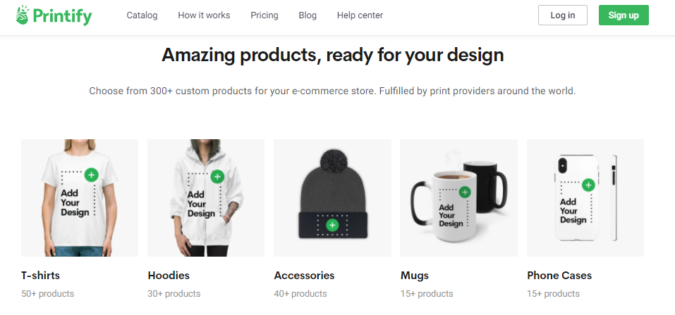 • Wide Product Range: Printify boasts a catalog of over 300 products, including apparel (t-shirts, hoodies, leggings), accessories (hats, bags, phone cases), home decor (pillows, blankets, wall art), and stationery (notebooks, stickers). This extensive selection allows merchants to cater to diverse customer preferences and market niches.