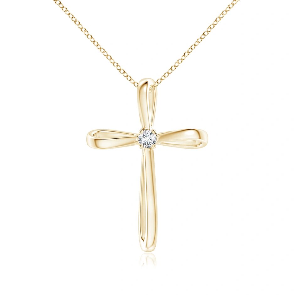 Twisted Cross Pendant with Diamond - Now 12% Off. Experience fluid elegance and faith combined in this alluring 14k yellow gold cross pendant. The classic religious symbol is beautifully designed in a twisted ribbon style, featuring a solitaire diamond prong-set in the center to add a touch of brilliance. The pendant comes with an 18-inch chain.