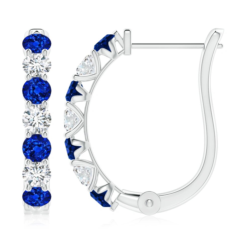 Sophistication with our Sapphire and Diamond Huggie Hoop Earrings, now available at 12% off. Alternating between dazzling diamonds and rich blue sapphires, each stone is delicately pronged to create a captivating contrast. Crafted in platinum, these elegant huggie hoop earrings are secured with hinged clip closures for effortless wear and enduring style.