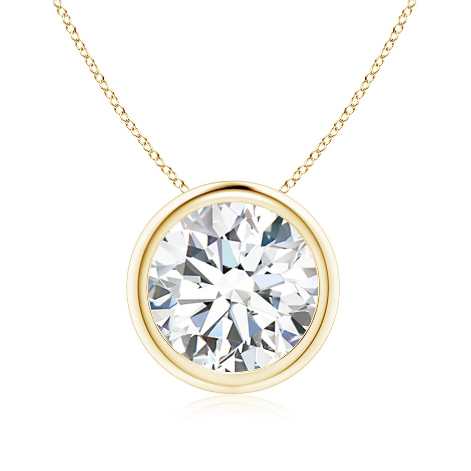 Lab-Grown Bezel-Set Round Diamond Solitaire Pendant, is now available with a stylish 12% discount. This elegant pendant, crafted in luxurious 18k yellow gold, combines sophistication with timeless style. The centerpiece is a dazzling lab-grown diamond, securely set in a sleek bezel setting, showcasing its remarkable brilliance. Suspended delicately on the chain, the diamond appears to float, adding a touch of enchantment to any ensemble. Elevate your look with this exquisite pendant, a perfect fusion of modern design and classic elegance.