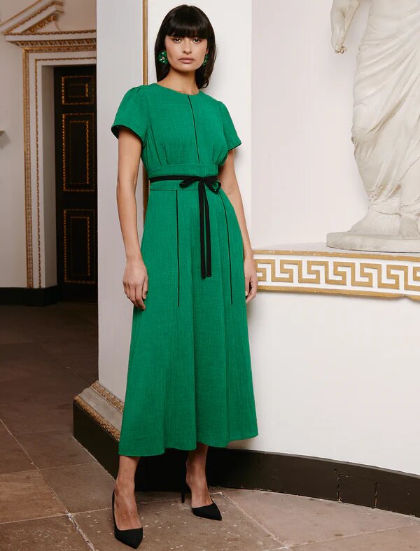 Discover the elegance of the Rosie Techni Voile Maxi Dress in Emerald Green Black, available for $340 with complimentary shipping included. Crafted with care, this dress offers both style and convenience with its gentle machine wash at 30°C. Made from luxurious Techni Voile fabric, comprising 60% Tri-Acetate and 40% Polyester, it ensures both comfort and durability. After washing, simply hang to dry to minimize the need for ironing or steaming, allowing you to effortlessly maintain its pristine appearance. Elevate your wardrobe with this timeless piece that exudes sophistication and grace.