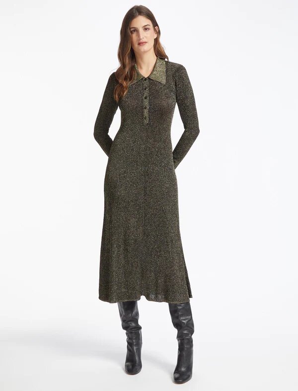 Giselle Lurex Rib Maxi Dress in Dark Gold, now with a tempting discount of 21% off. Care for this stunning piece is easy, requiring a gentle machine wash at 30 degrees on the wool cycle. Crafted from a luxurious blend of Lurex Rayon Knit, comprising 85% Rayon, 9% Nylon, and 6% Lurex Ya, this dress exudes elegance and comfort.
